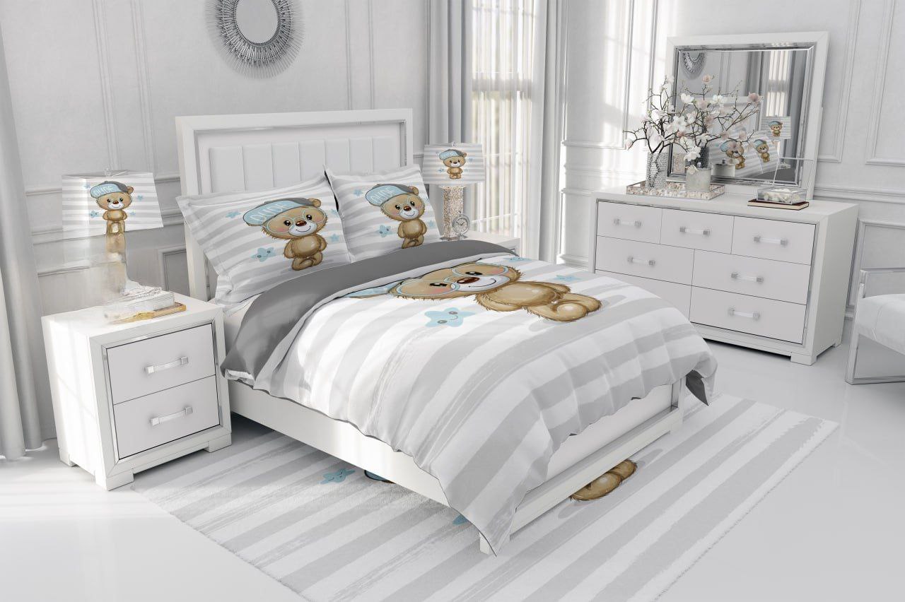 روتختی سهبعدی نوزادی سایز ۹۰ با طرح دوستداشتنی خرس ملوانی و ترکیب رنگ ملایم طوسی–کرم، انتخابی ایدهآل برای اتاق خواب نوزاد و کودک است. این طراحی فانتزی و آرامشبخش، فضایی گرم و دلنشین ایجاد کرده و برای هر دو مدل دخترانه و پسرانه کاملاً مناسب میباشد.چاپ سهبعدی با کیفیت بالا، جزئیات طرح را زنده و شفاف نشان میدهد و پارچه نرم و لطیف روتختی، سازگار با پوست حساس نوزاد است. این سرویس ۴ تکه کاربردی، گزینهای عالی برای سیسمونی و استفاده روزمره محسوب میشود